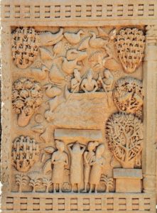 Meg kell jegyezni, hogy a sztúpa keletkezésekor a Buddhát még nem ábrázolták emberi alakban, csak szimbólumokon keresztül. Így a dramatizált képek mellett buddhista jelképek, fügefa, lótusz, kerék, a Buddha lábnyoma, valamint állatábrázolások, pávák, oroszlánok, elefántok alakjai tűnnek fel, szinte egy szabad négyzetcentimétert sem hagyva a megmunkált felületen.