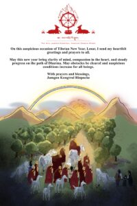 Legyen ez az új év a megújult remény, a belső stabilitás és a bódhicsitta virágzása mindannyiunk szívében. Legyenek leküzdve az akadályok és a kedvező körülmények erősödjenek minden lény javára.