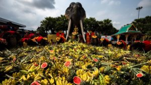 Thaiföldön március 13-a a nemzeti elefántnap. Ekkor zöldségekből és gyümölcsökből álló lakomára várják a nemzeti szimbólumnak számító méltóságteljes állatokat.