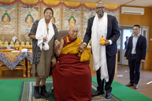 „Rengeteg áldást kaptam a tibeti néptől, és természetesen ma Őszentségétől is” – mondta Whitaker, a Dalai Láma előtt tisztelegve.