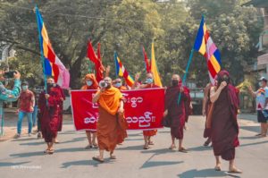 A puccs után rendszeressé váltak az utcai tüntetések és tiltakozások. A katonai vezetésű Állami Közigazgatási Tanács azonban minden ellenállást erőszakosan elfolyt, minden tiltakozó megmozdulást igyekszik leverni. Az óriási katonai elnyomás ellenére a tiltakozások széles körben folytatódnak. Sok tüntetést a köztiszteletnek örvendő és komoly tekintéllyel rendelkező buddhista szerzetesek is támogatnak részvételükkel.