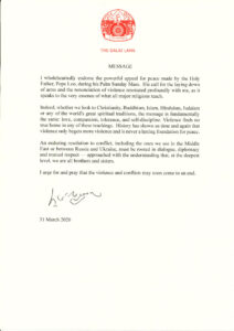 A konfliktusok tartós megoldásának – beleértve a Közel-Keleten vagy Oroszország és Ukrajna között zajlókat is – a párbeszéden, a diplomácián és a kölcsönös tiszteleten kell alapulnia, azzal a tudattal, hogy a legmélyebb szinten mindannyian testvérek vagyunk.