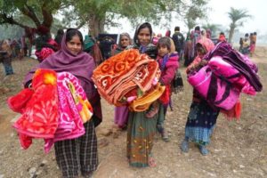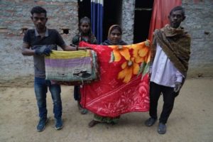 Régi ruhákat és szárikat használunk, azokat összevarjuk, így próbáljuk melegen tartani magunkat a hideg időben” – tette hozzá Anita. “Most már együtt használjuk az új takaróinkat a régi, házi készítésűekkel, amelyek melegebben tartanak minket. Ha csak a régieket használnánk, fáznánk. Az új takarók melegek, sokkal jobban alszunk velük takarózva.”