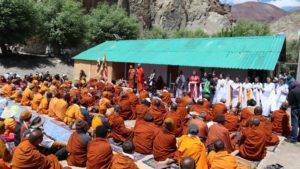 “A mai nap egy igazán szerencsés nap.” – mondta Bhikkhu Szanghaszéna. “Ezen a napon, amikor ezek a békeszertő padjátrik Ladakba érkeztek Manali-Leh-en keresztül, Őszentsége, a Dalai Láma is Leh-be érkezett. Ez valóban hatalmas áldás Ladaknak.”